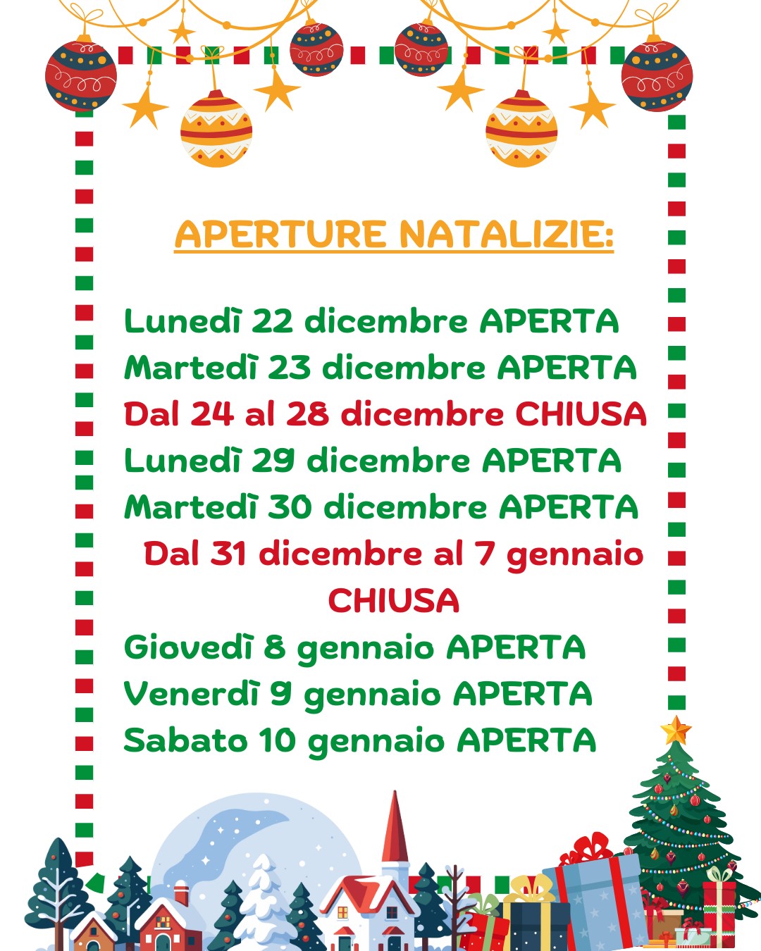 Descrizione Clicca sulla locandina per conoscere gli orari di apertura e chiusura della nostra biblioteca durente le vacanze di Natale.