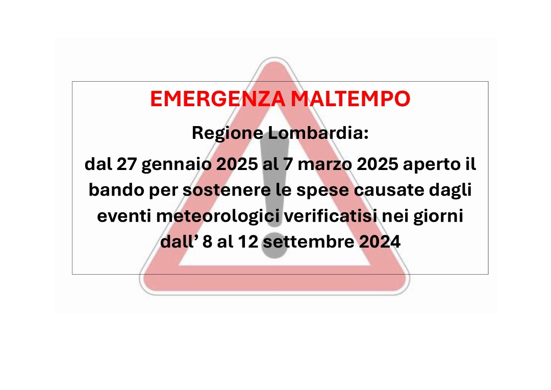 Regione Lombardia ha pubblicato i bandi per accedere ai contributi stanziati dal governo per gli eventi meteorologici verificatisi nei giorni dal 8 al 12 settembre 2024. Privati cittadini ed attività economiche produttive possono presentare le domande dal 27 gennaio al 7 marzo 2025