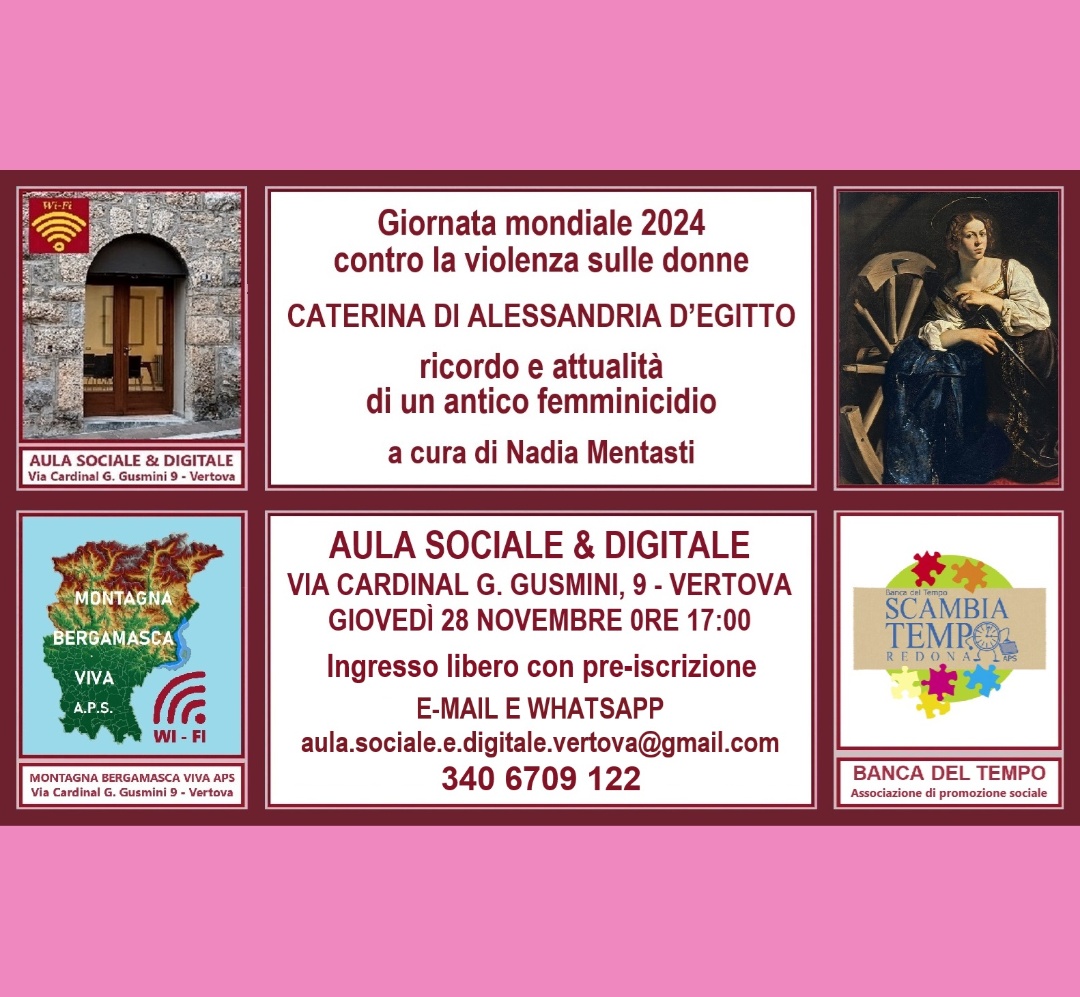 Giornata mondiale 2024 contro la violenza sulle donne CATERINA DI ALESSANDRIA D'EGITTO Ricordo e attualità di un antico femminicidio A cura di Nadia Mentasti